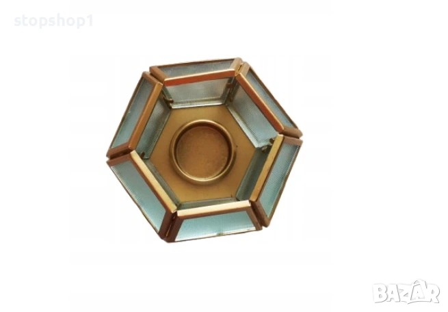 Стилен стъклен поставка за чаени свещи – Златен шестоъгълник 🌟