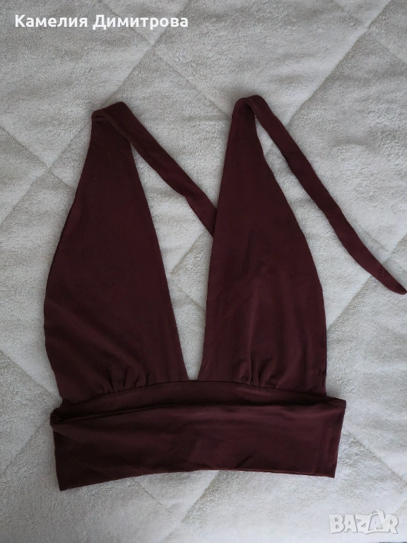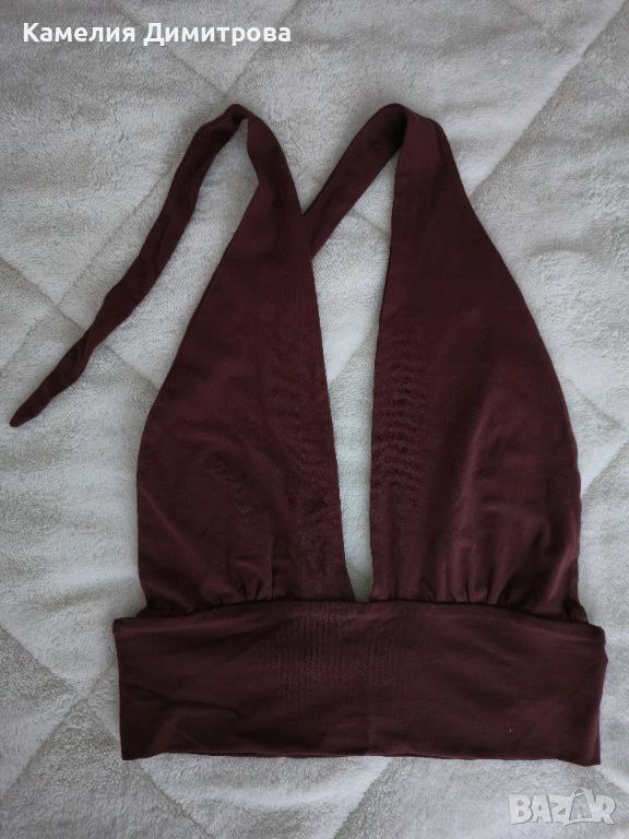 Топ с гол гръб и дълбоко деколте – тъмно бордо