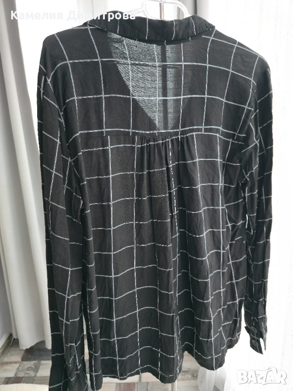 Черна риза с бяло каре и копчета → Обява 53286496