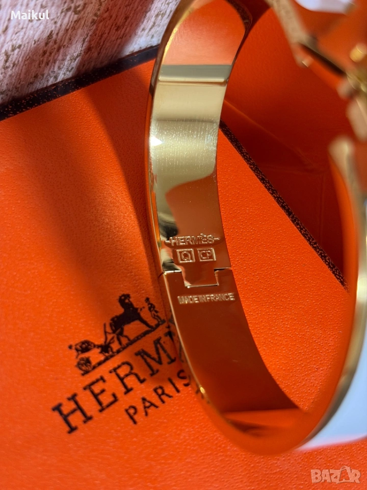Здравейте продавам гривна Hermes 17см. Гривната е изключително качество и гарантирам за него както се вижда на снимките е с брандирано лого на самата гривна.