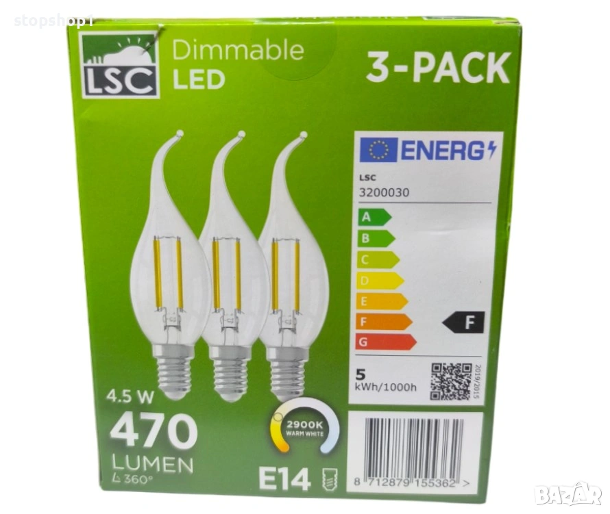 Този комплект от три LED крушки E14 с мощност 4,5 W е идеалното решение за модерно и икономично осветление. Всяка крушка излъчва 470 лумена, предлагайки ярка светлина с минимална консумация на енергия (5 kWh/1000 h). С размери 120 x 35 мм, те са подходящи за повечето осветителни тела E14 и работят с променливо напрежение 220-240 V и честота 50/60 Hz. Те са отличен заместител на традиционните крушки с нажежаема жичка с по-висока мощност, идеални за полилеи, лампи и стенни аплици.