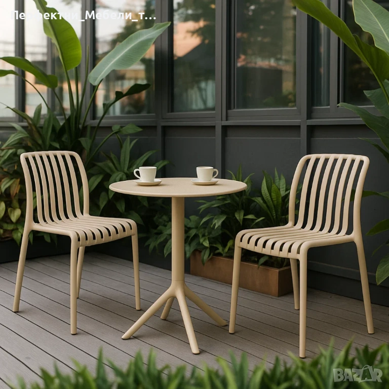 Икономичен здрав,елегантен стол градински от полипропилен до 120 кг зелен,бежев и бял цвят на склад