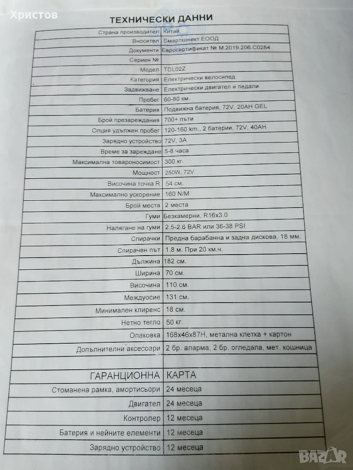 Електрически велосипед Tne ocean legend fashion само на 124 км , в отлично състояние, пълен комплект принадлежности и документи. Максимална скорост 45км/ч. Изминава до 100км с един заряд. Има сертификат и е без регистрация в кат и шофьорска книжка.ЦЕНА 870€