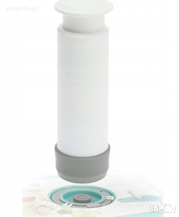 Вакуумната помпа е практичен и компактен инструмент, който спестява място по време на съхранение и пътуване. Изработена от издръжлива пластмаса в елегантен бяло-сив цвят, тя е лека и лесна за употреба.