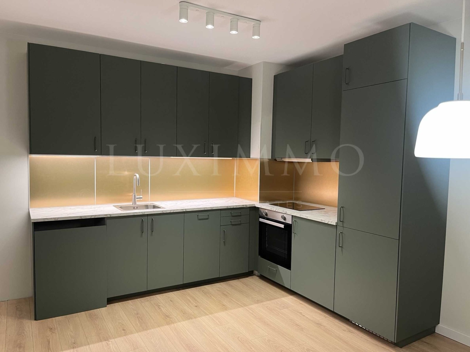 Функционална кухня с чисто нови вградени електроуреди от висок клас фурна, котлони, голям хладилник с фризер;