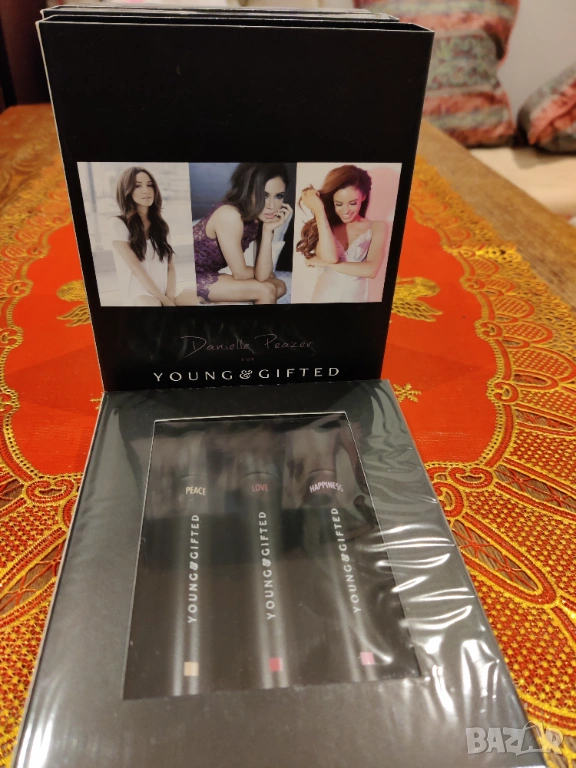 Огледало с тъмно син цвят. Цена 15 евро. Комплект от 3 бр. по 15 мл.парфюми с ролка на Danielle Peazer Цена 20 евро.