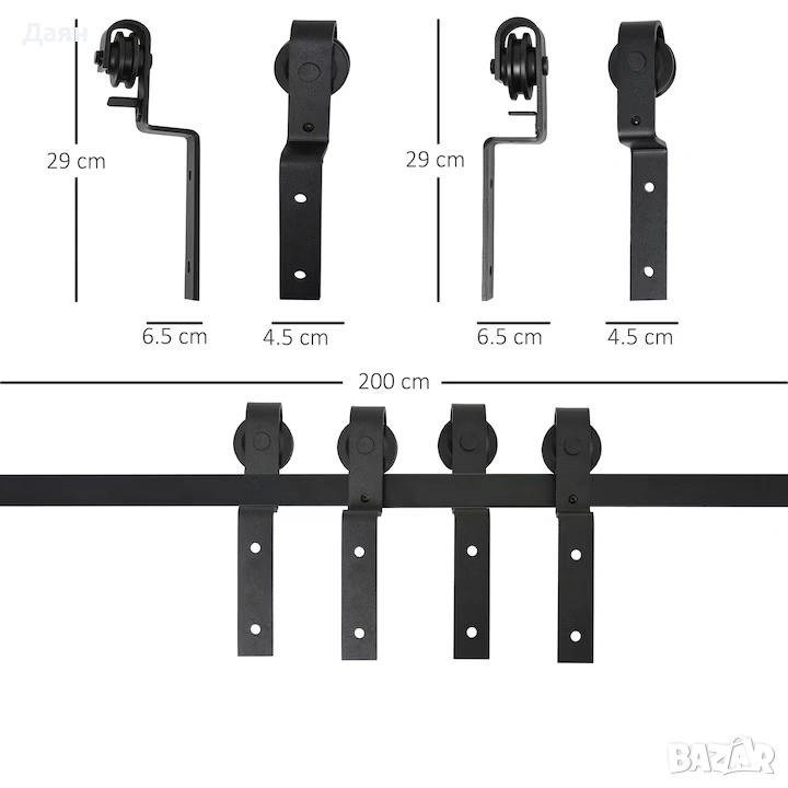 - Комплект за плъзгаща се врата за хамбар, подходящ за до 2 дървени врати