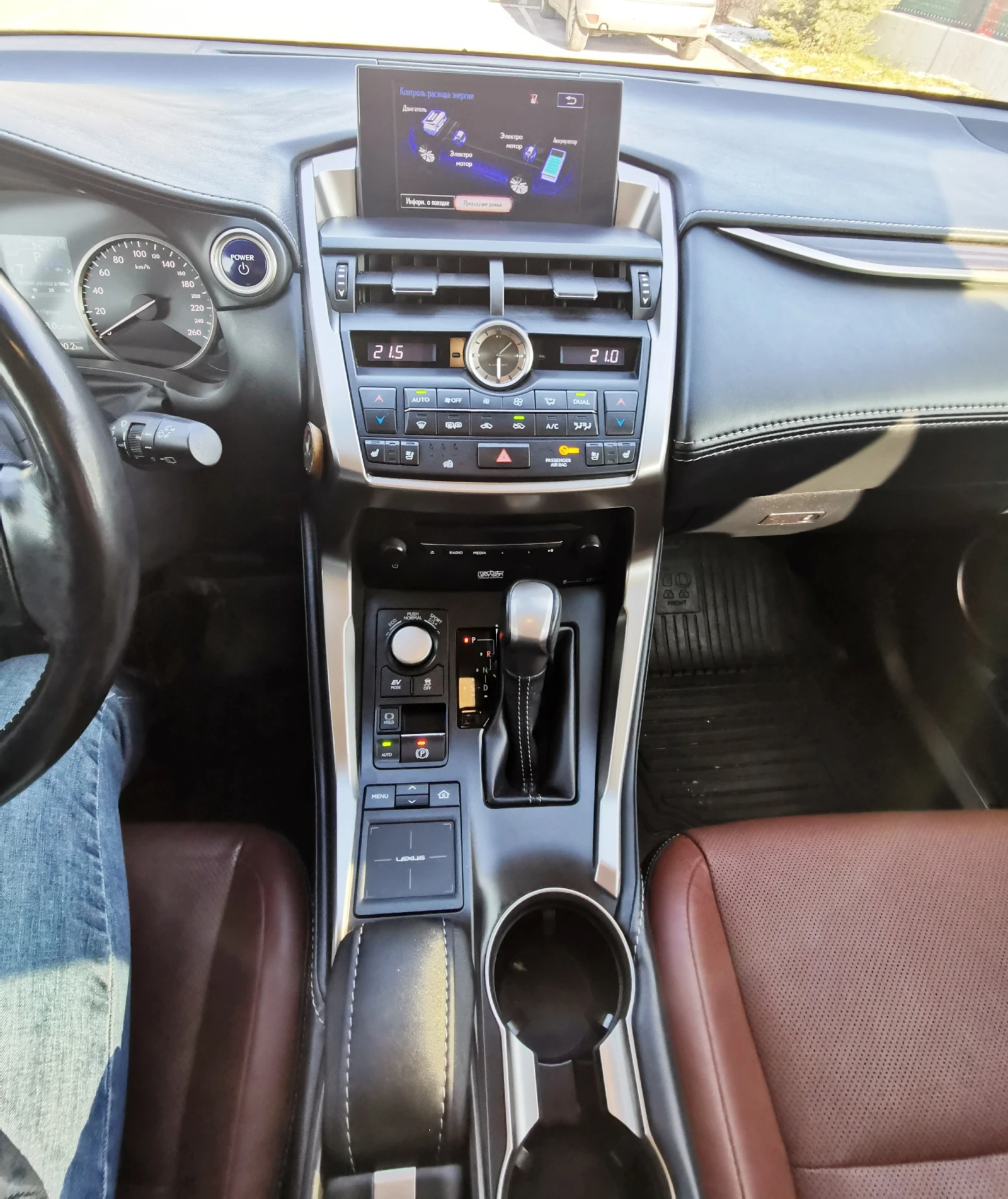 Lexus NX 300h Luxury Закупен нов от ТМ Ауто/Lexus България Гаранционно обслужван, пълно сервизно досие, сервизна книжка Гаранционен преглед на батерията до 08. 2027г. ( възможно удължаването на пълна гаранция до 200к км с Toyota Relax ) Най-високо ниво на обурудване Luxury, всички възможни екстри (снимка 11, част от тях) -AWD -i / 4x4 - интелигентна система за задвижване на всички колела -Скоростна кутия: E-CVT (електронно управляема непрекъснато променлива трансмисия) -Динамичен круиз контрол с радар(DRCC), светлинен сигнал за близост и дистанция, авто намаляване на скороста от предното мпс, три дистанции -Интелегентни сензори за паркиране, режима за близост, светлинен и звуков сигнал -Камера за паркиране с очертания -Асистент за аварийно спиране, светлинен и звуков сигнал -Асистент за мъртва зона(BSM) -Асистент за потегляне на задна скорост(RCTA), предопредителен звуков сигнал за близост на хора и приближаващи се мпс-та -Асистент за автоматични дълги светлини(AHB), без отблясъци, адаптивни светлини в завой -Асистент за напускане на лентата(LTA), светлинен и звуков сигнал -360 градуса камера, сензори за странична дистанция -Разпознаване на пътни знаци(RSA) -Сензор за дъжд -Отопляемо предно стъкло и чистачки -Навигационна система -Старт/стоп -EPB електронна и автоматична ръчна спирачка -AUTO HOLD, задържа спирачката вместо вас -ESP -Въздушни възглавници за предните места: фронтални, странични и за коленете, странични въздушни завеси, предни и задни места -Различни режими на управление: Eco/ Normal / EV / Sport S/S+ -Адаптивно окачване в режими: Eco/ Normal / Sport S/S+ -Кожени седалки с отопление, охлаждане и обдухване, три степени -Електро регулиране на всички седалки (вкл. задните) -Шофьорска седалка и волан, памет за трима водача -Мултифункционален хидравличен волан с подгряване -Лумбална опора с надуване -Дръжки на вратите със сензор-система за централно заключване/отключване и прибиране на огледалата с допир -Електрически прозорци, фабрично затъмнени -Електрическа задна врата, управление от салона, дистанционното и приложението -Многозонов и сензитивен интелигентен климатроник -Система за бързо отопление през зимата и охлаждане през лятото -LED дневни светлини -Халогенни фарове за мъгла -Почистване на фаровете -Огромен панорамен стъклен покрив, динамик скай с ел. щора -Индукционно зареждане за смартфон -Тач скриин с докосване -Тач скриин за включване на интериорни светлини -Външни огледала, предупреждение за мъртва зона, самоприбиране, автоматична бленда и подгряване -Вътрешно огледало, автоматично затъмняване -Нощно екстериорно осветление при доближаване, oгледала с осветление -Изофикс пътническа седалка -Голям заден бар с поставки за чаши -Премиум аудиосистема Марк Левинсън, тунер/радио, USB, DAB -Bluetooth, Wi-Fi -Гласови команди -Два комплекта ключове + карта -Вградена система за GPS проследяване -Аларма против кражба, оригинален имобилайзер + допълнително монтиран висок клас -Контрол на налягането в гумите, мемори сензори с памет за два комплекта джанти с настройка -Алуминиеви джанти, секретни болтове -Оригинални зимни стелки в салона и багажника -24/7 Lexus съпорт, за страната и чужбина при всякакви казуси -Хибридната батерия е разположена под задната седалка, за да не компрометира обема на багажника, представлява вариант на self-charging хибрид, самосточтелно зареждане -Моделът разполага с богат технологичен и безопасносте