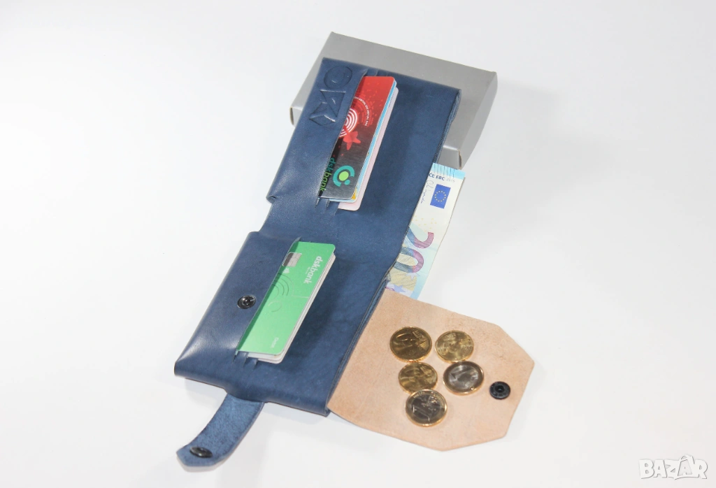 - Разполага с 6 слота за карти, които побират общо 12 карти, голямо отделение за банкноти и голям монетник