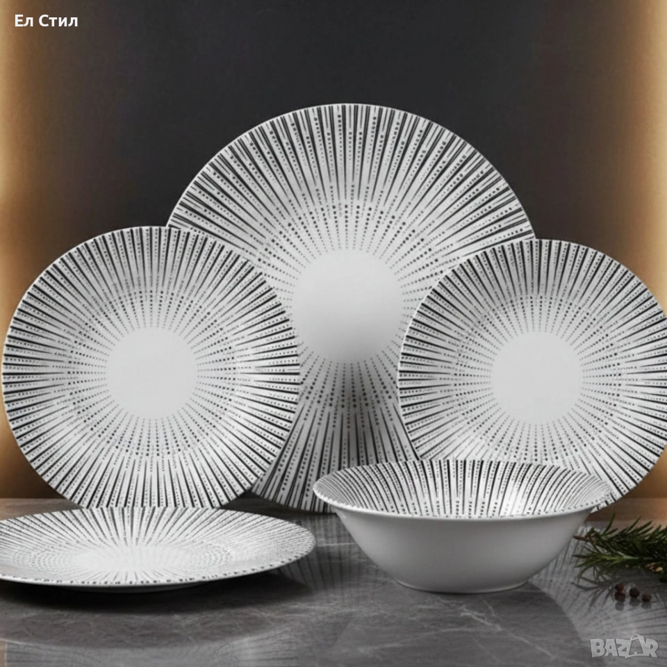 🥰Комплект чинии 24 части с геометричен дизайн –