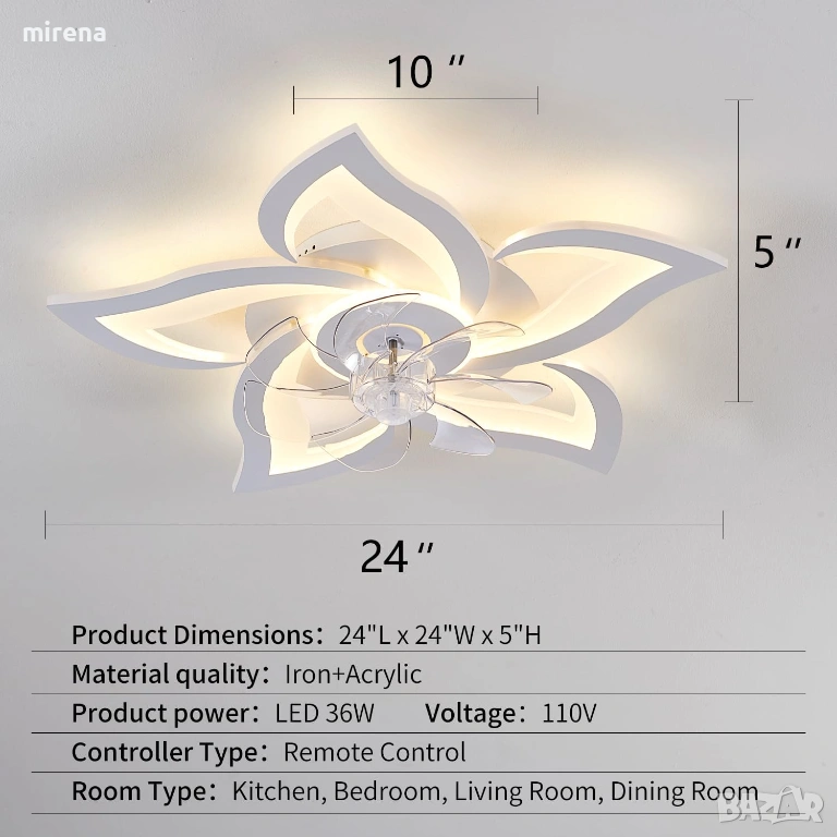 ЛЕД LED Модерен таванен вентилатор бяло цвете осветление дистанционно