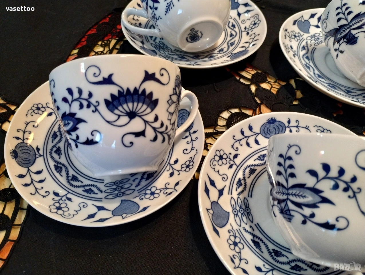 Неупотребяван сервиз за чай/дълго кафе от фин баварски порцелан, включващ: шест чаши 6/8 см. с вместимост 180 мл. и шест подложни чинийки 13.5 см.