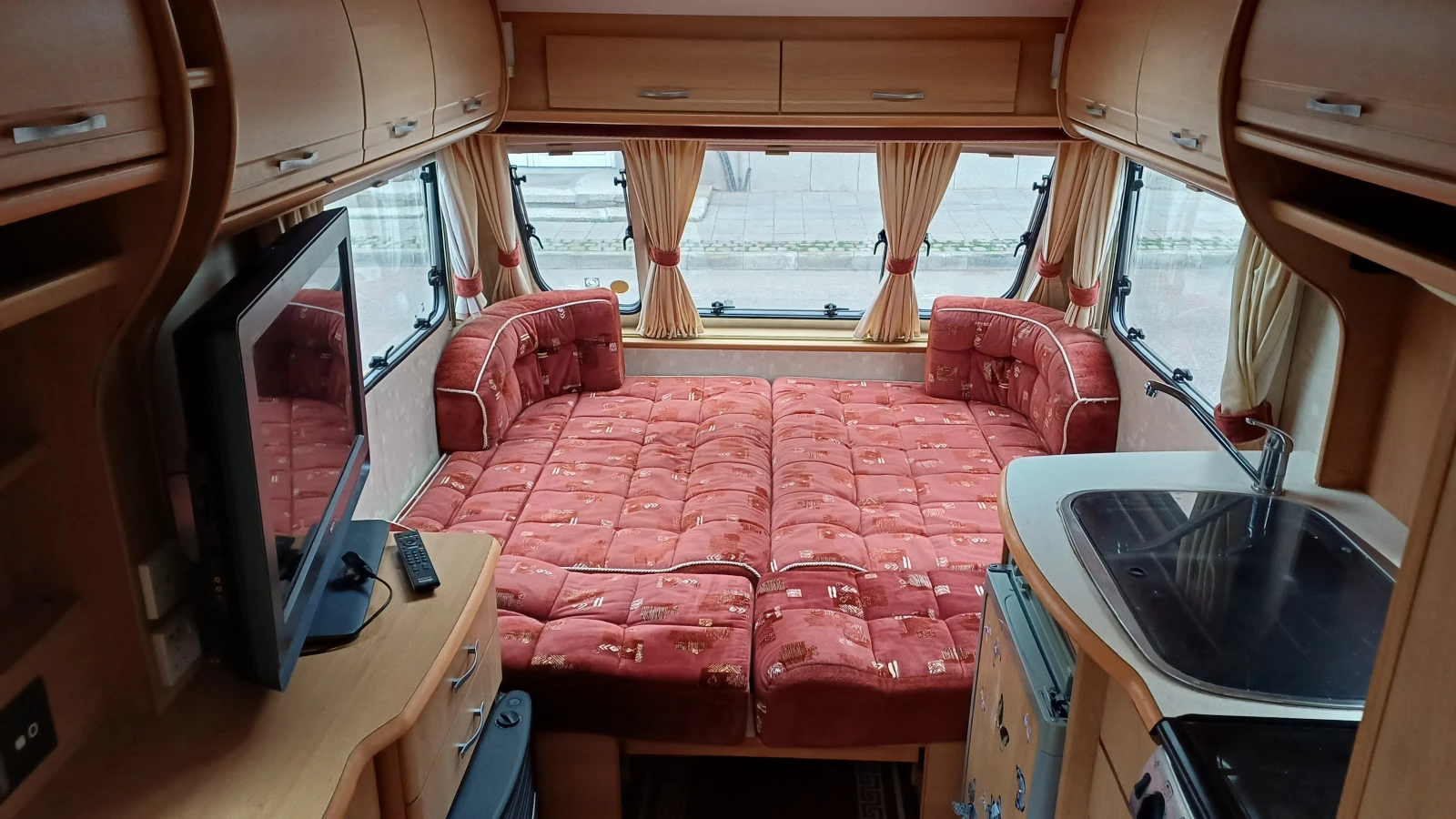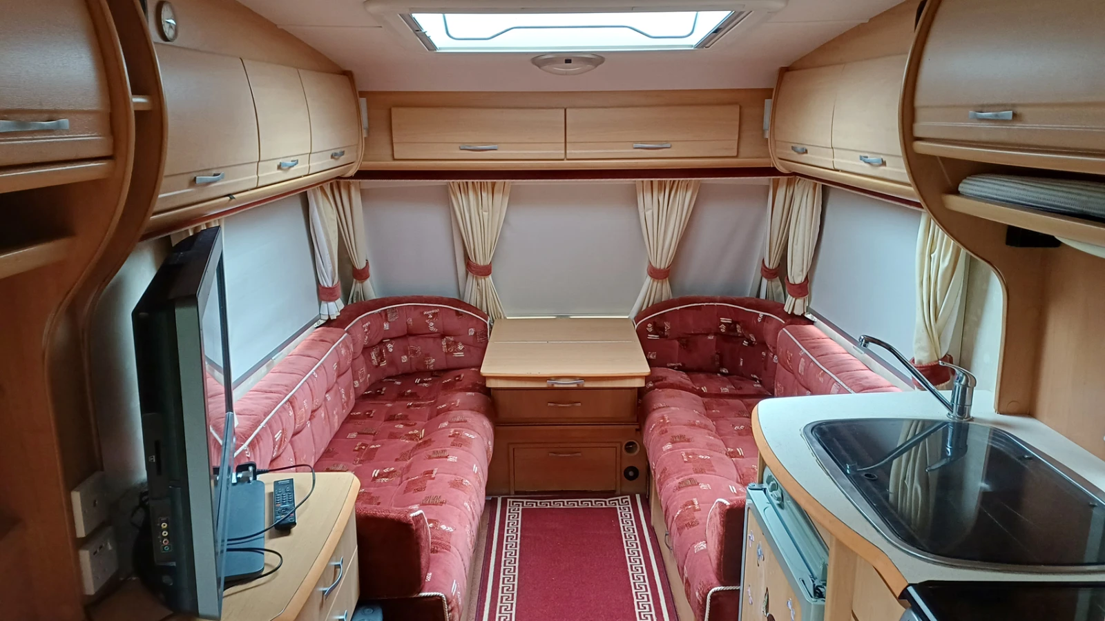 Swift Lifestyle 480 - 2места *СОЛАРНА Мобилна система - Renogy 100W (ЧИСТО НОВА) *МУВЪР *Форсел+Анекс+сгъваемо легло *Бойлер -газ/220V *Душ Кабина *TV *Радио *Инвертор - 12/220V *АБСУРБАТОР *Печка за отопление - газ/220V *Печка с 3 котлона на газ и 1 на 220v-фурна + грил *Хладилник - газ/220V/12V *Масичка *Външна соларна лампа *Помпа за вода *Щори, комарници, пердета на всички прозорци *Покривало за предни стъкла (Caravan Front Cover for Towing) *Резервоар за чиста вода *Резервоар за отходните води *Комарна мрежа входна врата *Голям шибидах *Резервна гума *Лети джанти *Газова бутилка *Вградено зарядно за акомулатора *Химическа тоалетна *Ключ за стабилизиращите лапи *Мin -1051kg / Маx - 1262 kg //НАЛИЧНА гр. Пловдив - ОГЛЕДИ ПО ВСЯКО ВРЕМЕ //