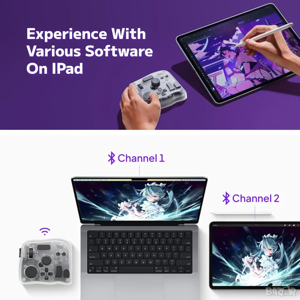 TourBox Elite Plus е усъвършенствана конзола за управление, специално разработена за дигитални творци, търсещи оптимизация на работния процес. Това е първият Bluetooth контролер на марката с пълна поддръжка на iPadOS, освен стандартната съвместимост с macOS и Windows. Устройството цели да замени сложните клавишни комбинации с интуитивни физически бутони, скролове и дискове, позволявайки „сляпо“ управление с една ръка. С ергономичния си дизайн и прозрачен корпус (Ice Translucent), TourBox Elite Plus позволява на потребителите да се фокусират изцяло върху творчеството – от дигитално рисуване и фоторетуш до видео монтаж и аудио обработка.