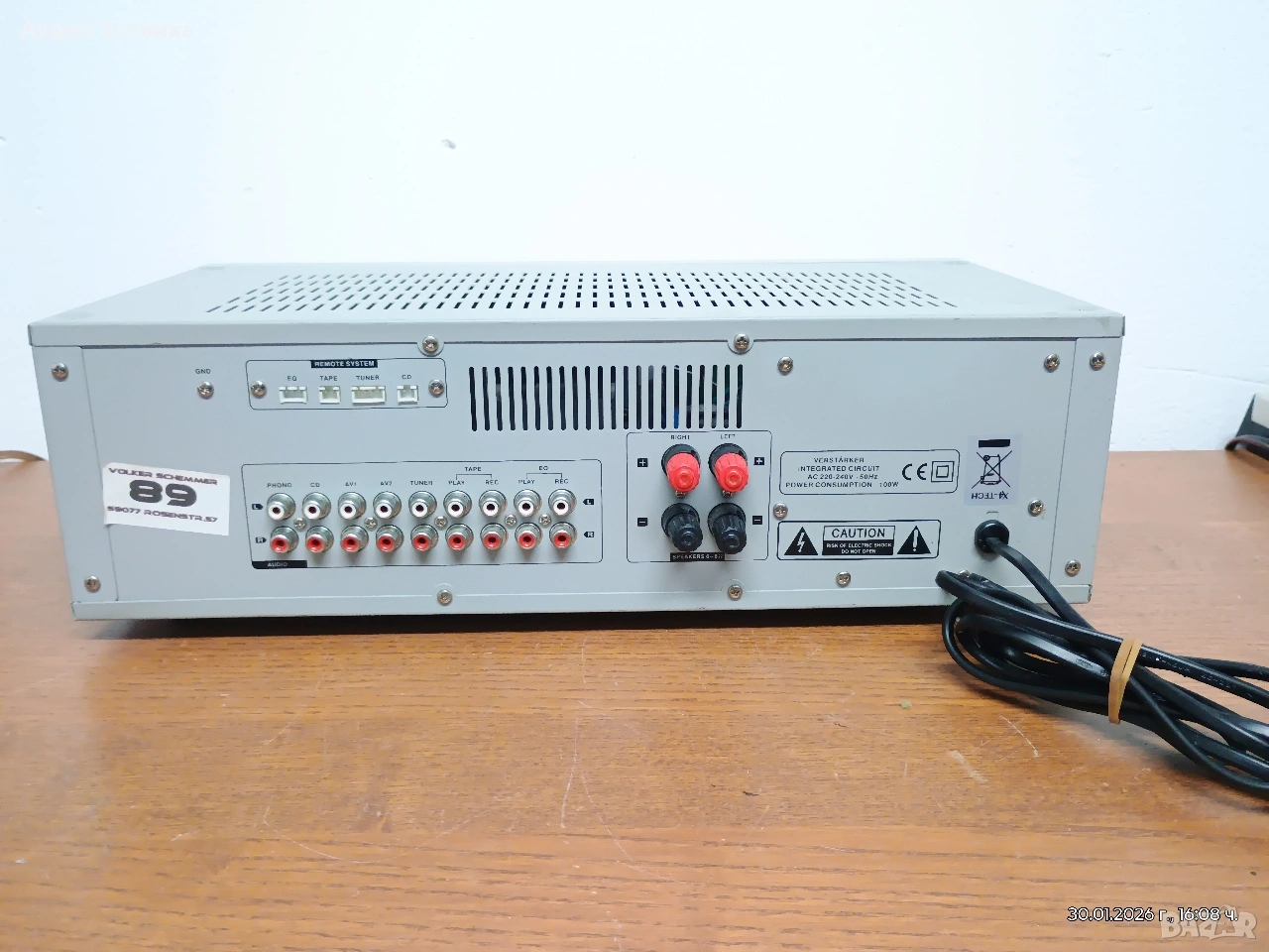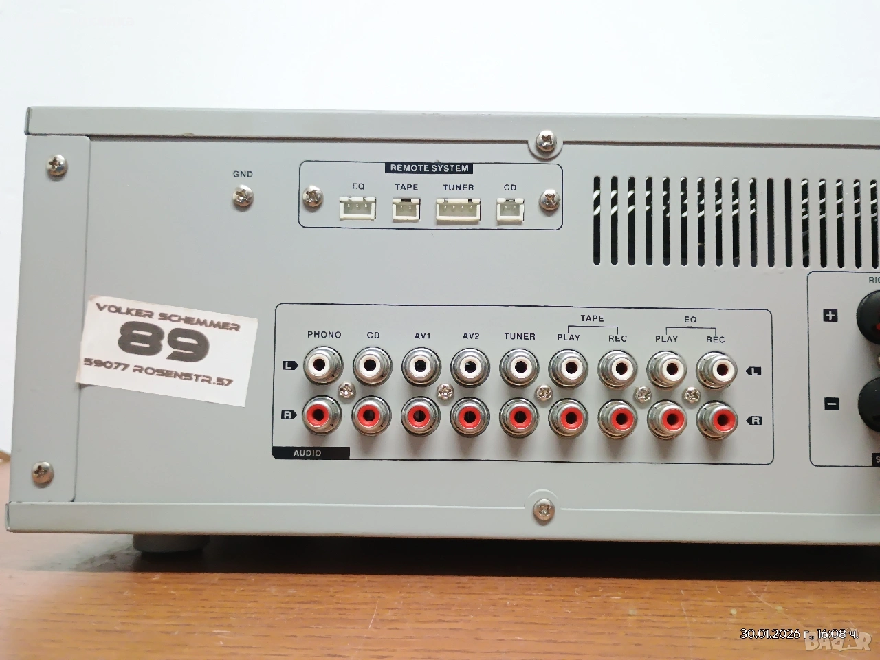 Изходи за 2 тонколони (винтови клеми), изходи за запис (Tape Rec, EQ Rec)