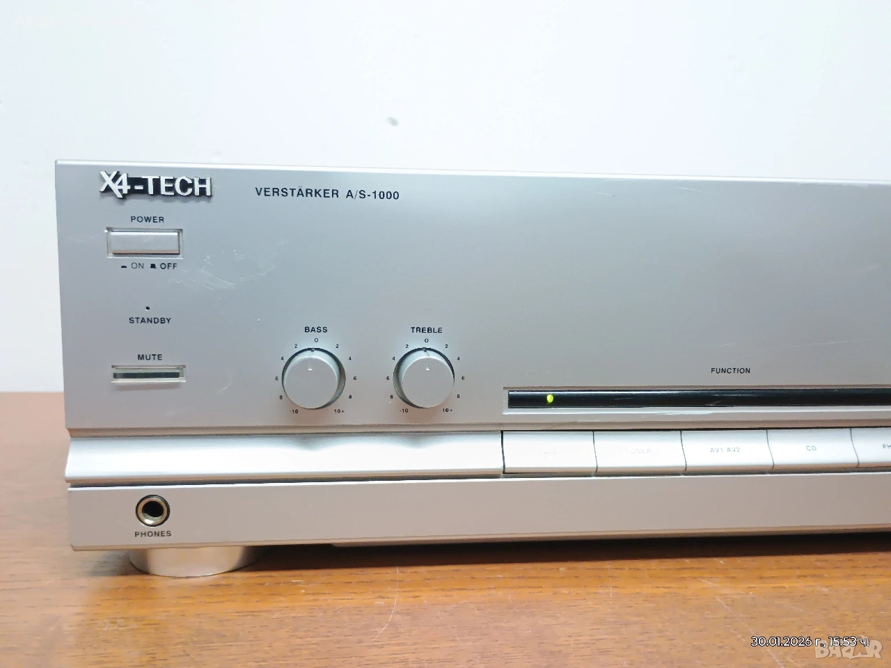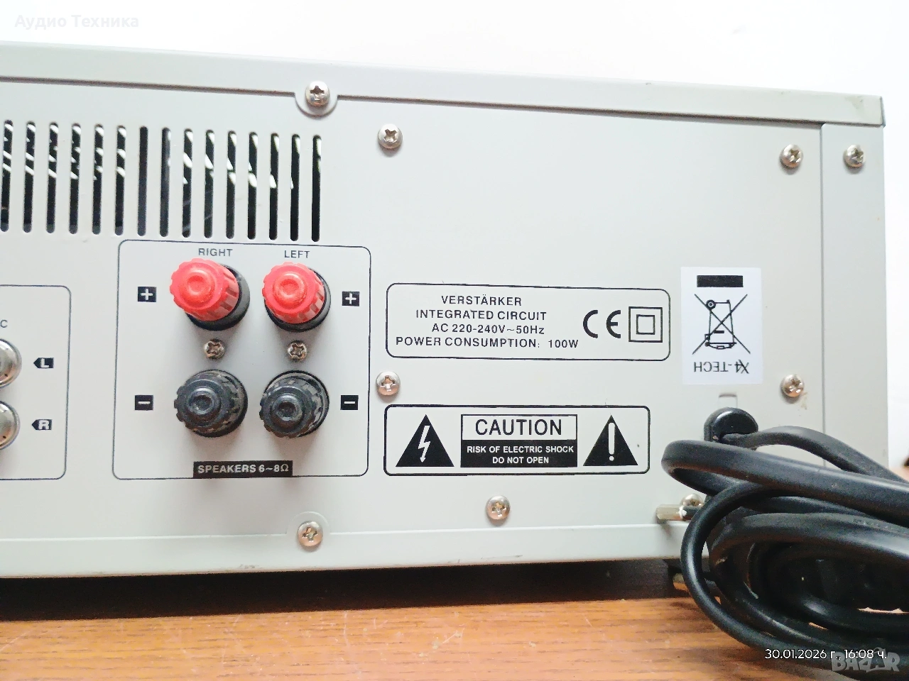 Качествен транзисторен немски стерео усилвател X4-TECH с активно охлаждане.