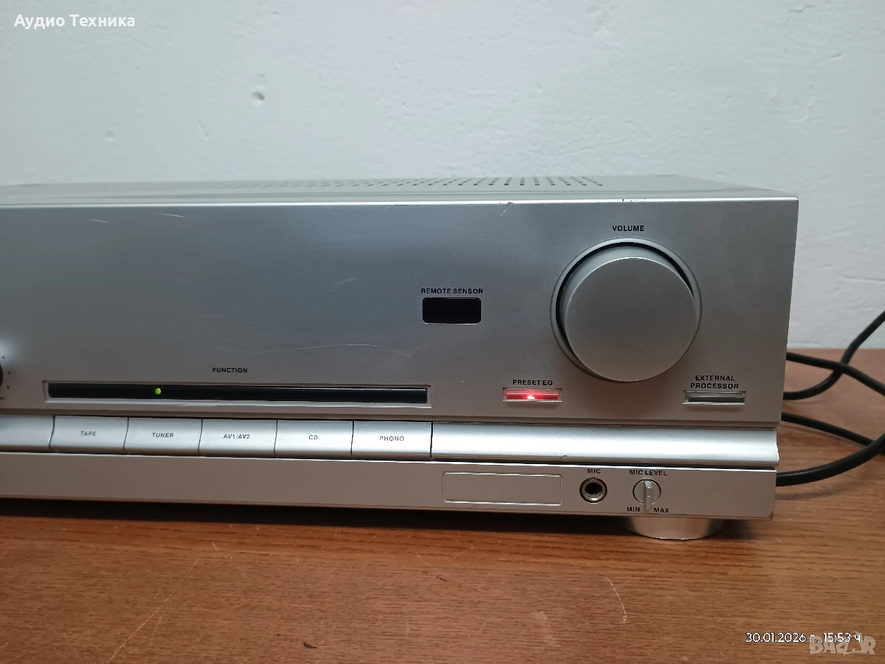 Входове (Phono, CD, AV1, AV2, Tuner, Tape Play), както и вход за външен еквалайзер