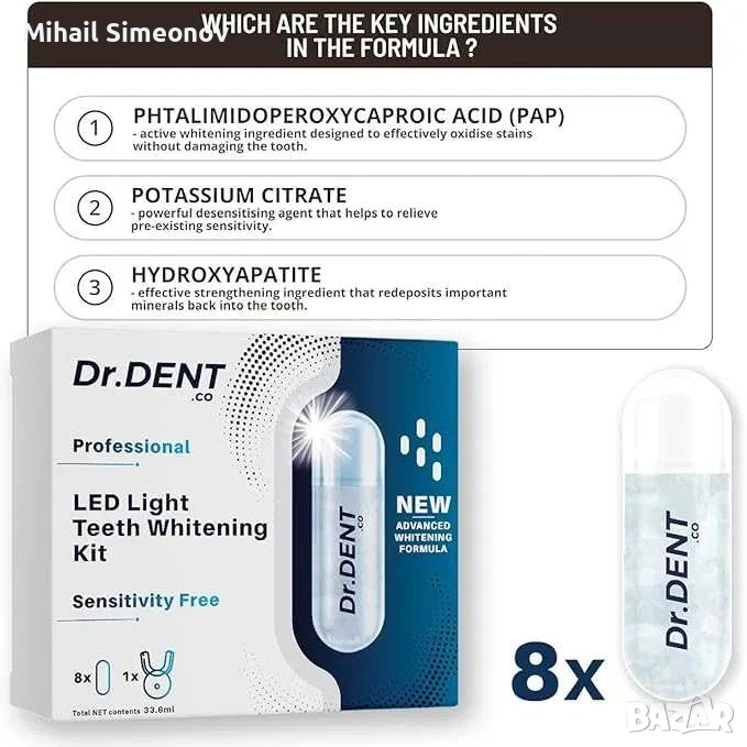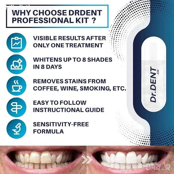 Професионален LED комплект за избелване на зъби DrDent - Формула без чувствителност - 8 , 20,45 € → Обява 53288647