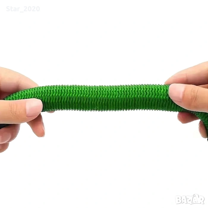Разтегателен маркуч с пистолет осигурява лесно управление на напояването с голямо разширение и удобство при съхранение. Изработен от здрави материали, той е идеален за поливане на градини, миене на коли и други външни дейности.
