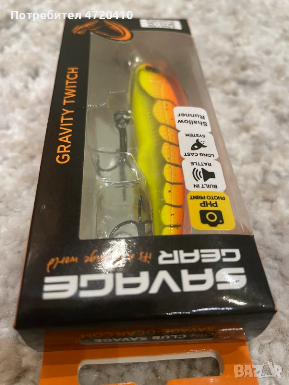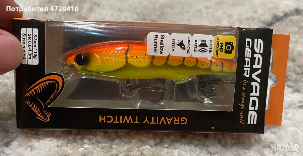 Здравейте. Предлагам примамка за щука тип воблер на известната компания SAVAGE GEAR. Моделът е Gravity Twitch и е чисто нов. Закупен е от магазин на SAVAGE GEAR на цена от 11 евро. Причината по която го продавам, е че не мога да го използвам и нямам въдица за него. Сигурен съм, че ще върши перфектна работа, защото е подходящ както за реки, така и за язовири. Дължината му е 8,3 см и тежи 10 грама с две тройки кукички. Уверен съм , че ще бъде в полза на всички запалени рибари! Приятен ден.