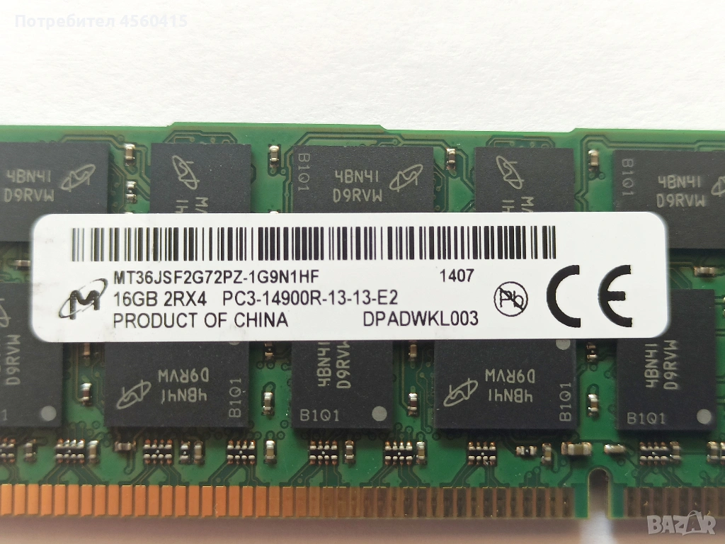 Продавам памети за сървър 16 гигабайта, снимка 1 - RAM памет - 53289343 Продавам памети за сървър 16 гигабайта, снимка 2 - RAM памет - 53289343 Продавам памети за сървър 16 гигабайта, снимка 3 - RAM памет - 53289343 1/3