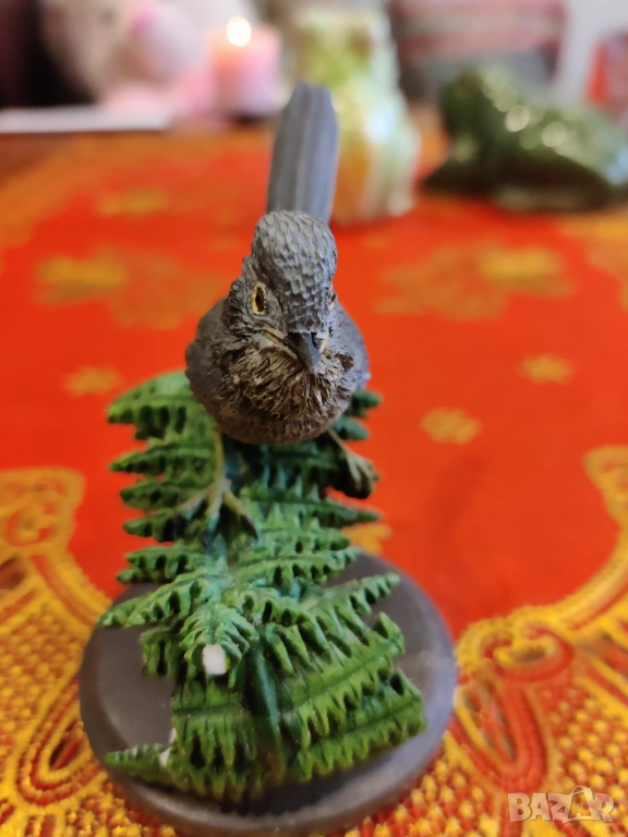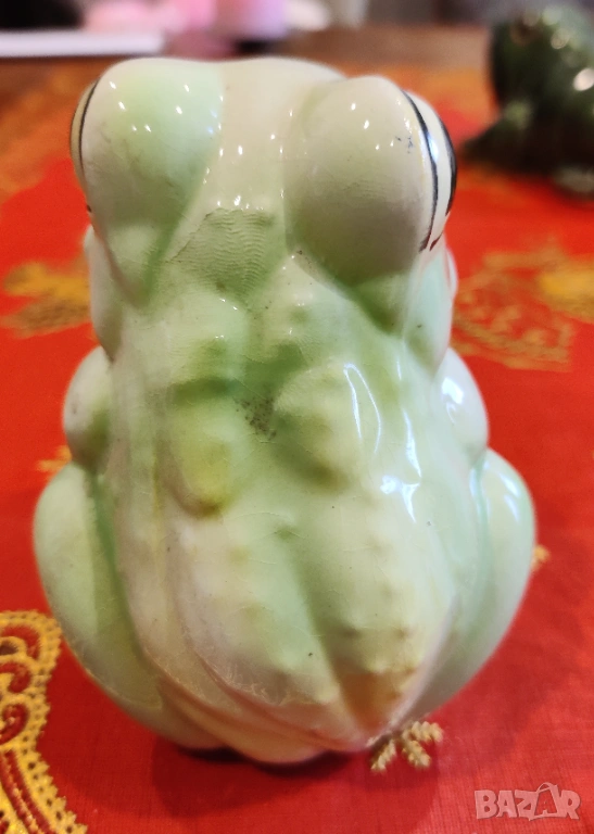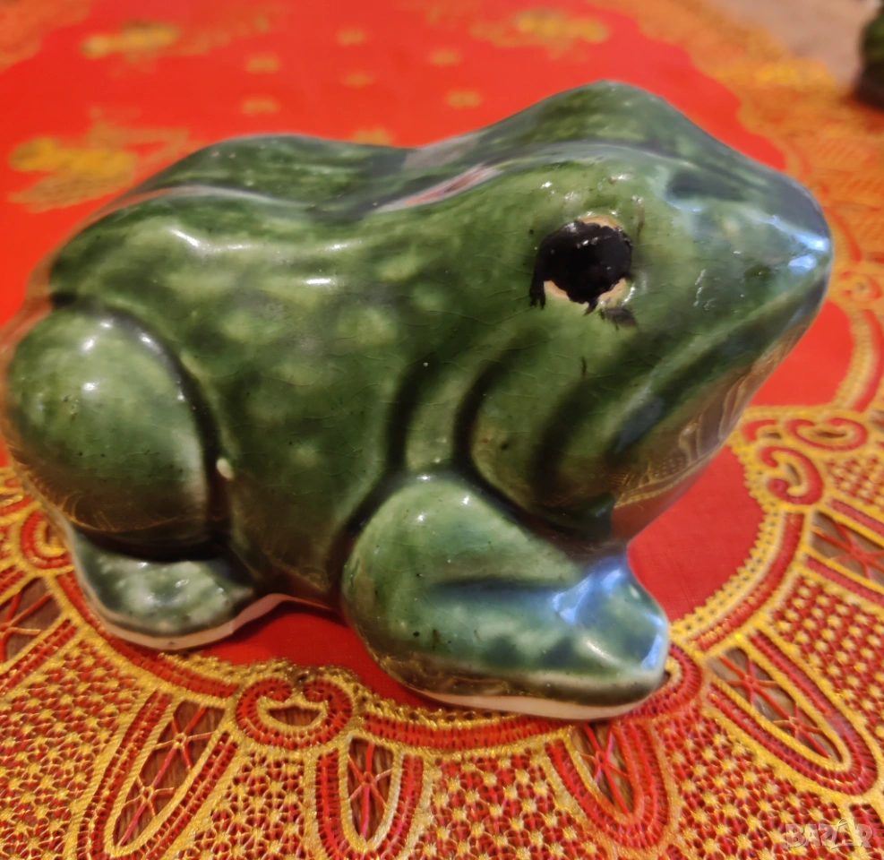 Жаба тъмно зелено, многоцветна, височина 7, дължина 16 см. Цена 10 евро. Жаба светло зелена Portugal is височина 12 ширина 8 см. Цена 10 евро. Птичка на храст Qiseaux Collection,има забележка на храста. Цена 7 евро