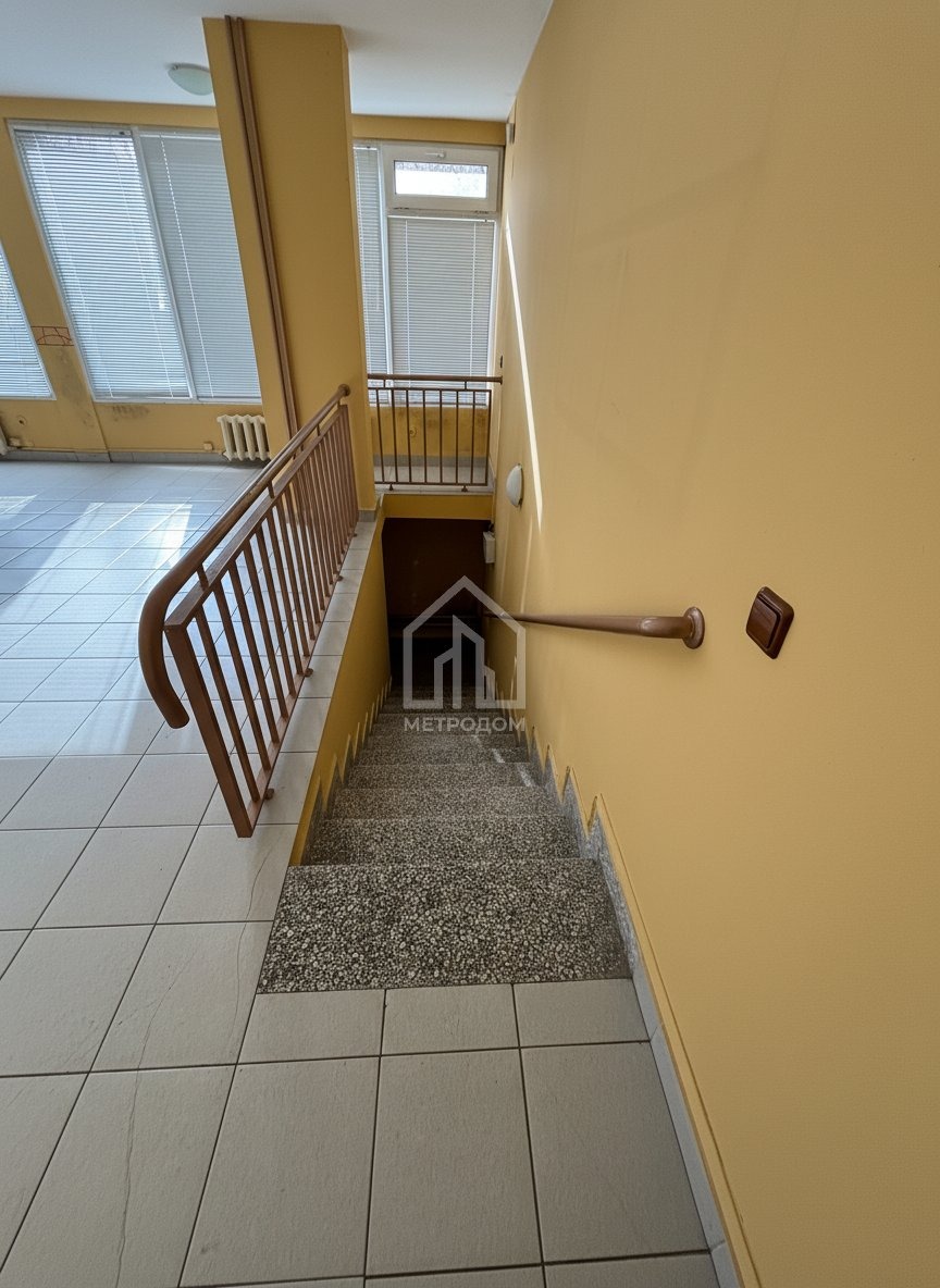 Сутеренният етаж е обособен като склад и може да се използва за съхранение, архив, подготовка на стока или помощни помещения.