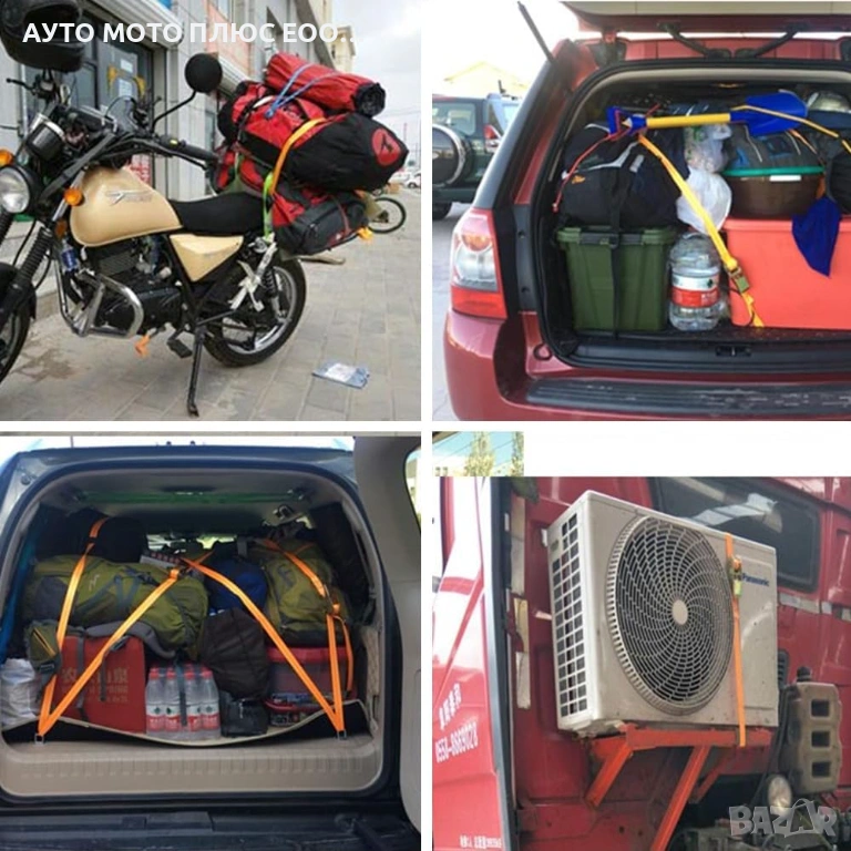 Предназначение: Използват се за сигурно укрепване на багаж, оборудване или други предмети, за да се предотврати тяхното движение или повреда.