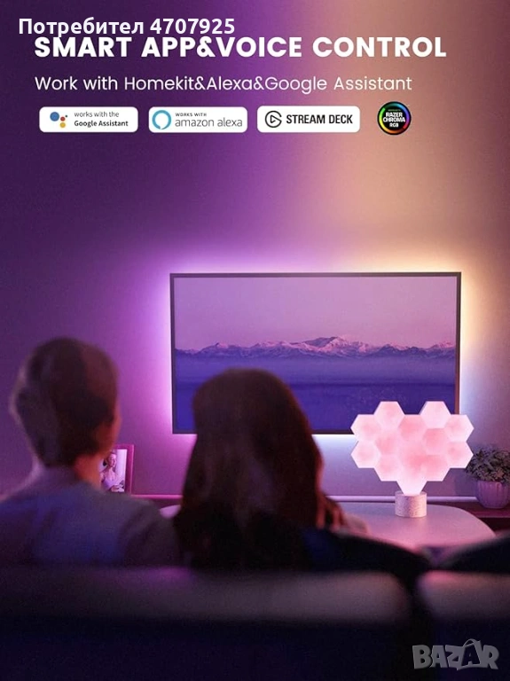 С 6 различни начина на управление – Apple HomeKit, Google Assistant, Amazon Alexa, IFTTT, Razer Synapse 3 и приложението Cololight – имате пълен контрол върху осветлението. Просто се свържете към 2.4 GHz Wi-Fi и управлявайте светлинните панели отвсякъде. Не са нужни кабели, дистанционни или физически бутони – можете да регулирате яркостта, цвета, включване/изключване, таймери и други чрез гласови команди.