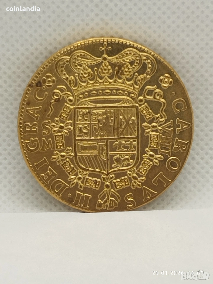 позлатена Испанска монета репродукция , снимка 1 - Нумизматика и бонистика - 53290282 позлатена Испанска монета репродукция , снимка 2 - Нумизматика и бонистика - 53290282 1/2