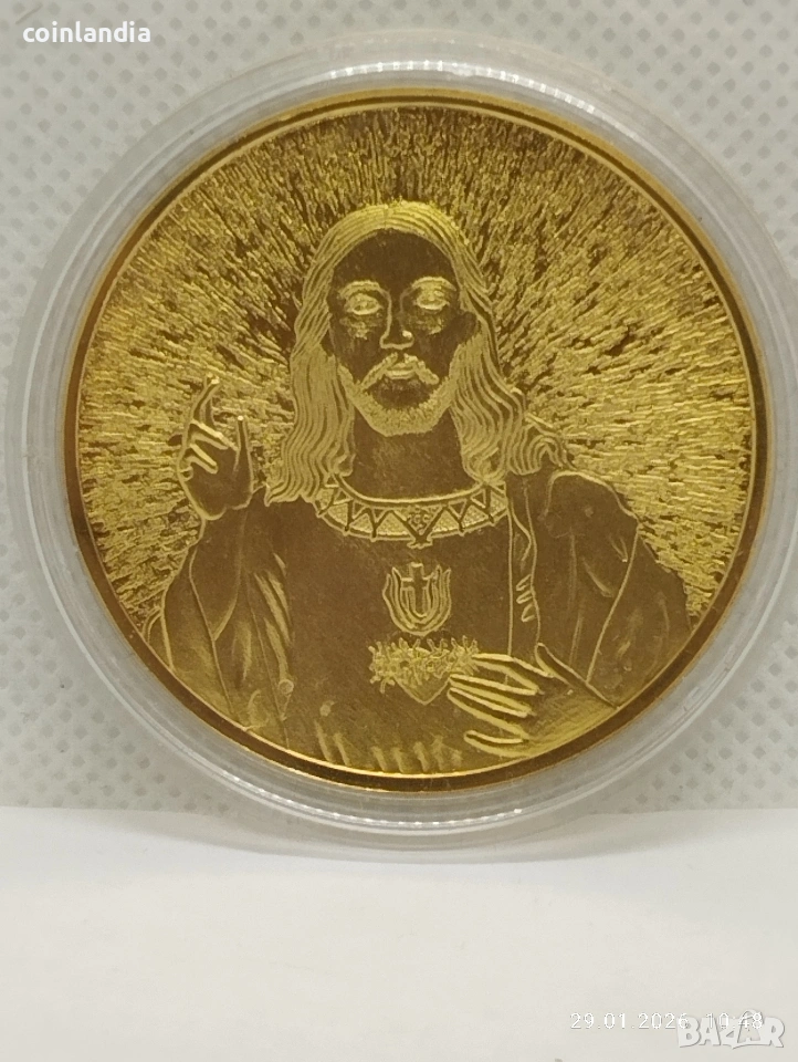 позлатена монета Исус Христос , снимка 1 - Нумизматика и бонистика - 53290356 позлатена монета Исус Христос , снимка 2 - Нумизматика и бонистика - 53290356 1/2