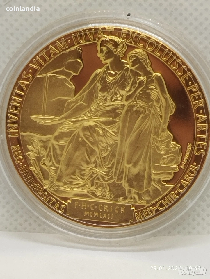 позлатена монета Нобелова награда по медицина , снимка 1 - Нумизматика и бонистика - 53290367 позлатена монета Нобелова награда по медицина , снимка 2 - Нумизматика и бонистика - 53290367 1/2