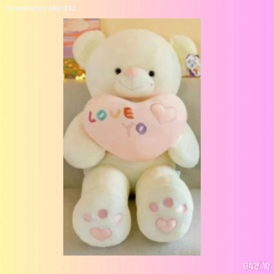 Голямо плюшено мече, със сърчице 85 см → Обява 53290446