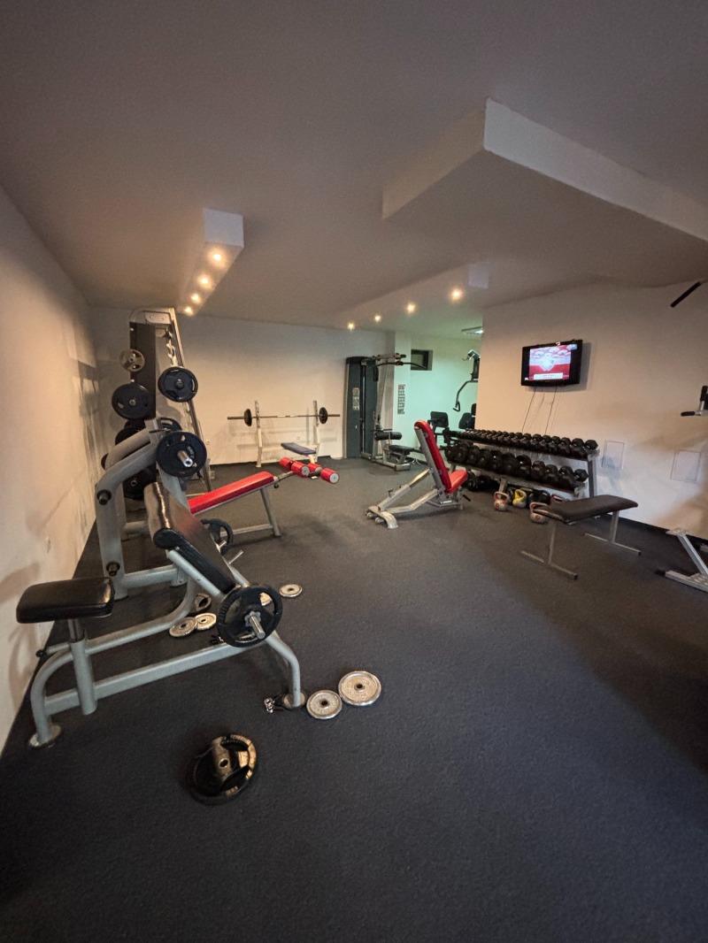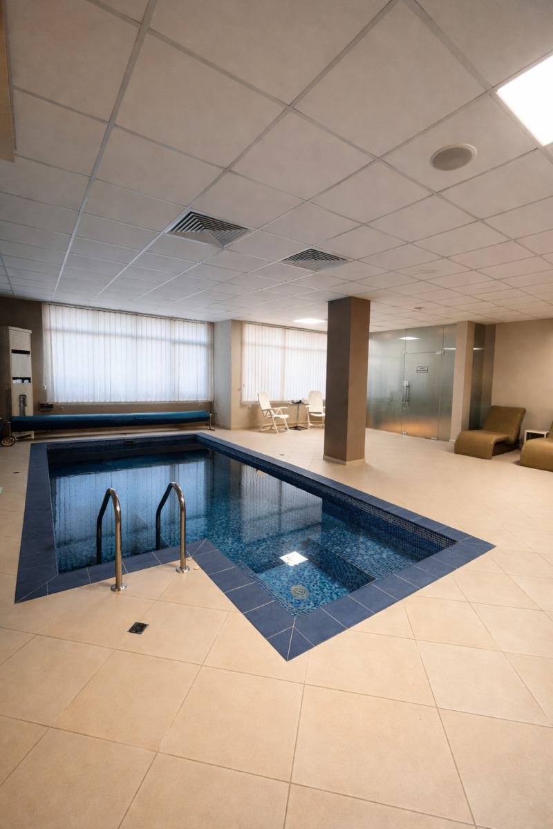 фитнес зала с индустриален дизайн и професионално озвучаване, допълнена от отделна зала за йога и пилатес. Пълноценен спа тракт със сауна, парна баня и специализирани зони за термални процедури.Кабинети за масаж и терапия, проектирани за максимална дискретност и комфорт.Стилна рецепция и зона за почивка, които създават усещане за петзвезден хотелски уют.