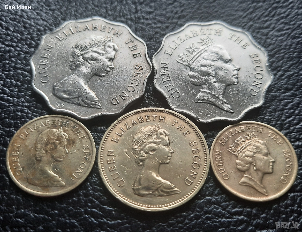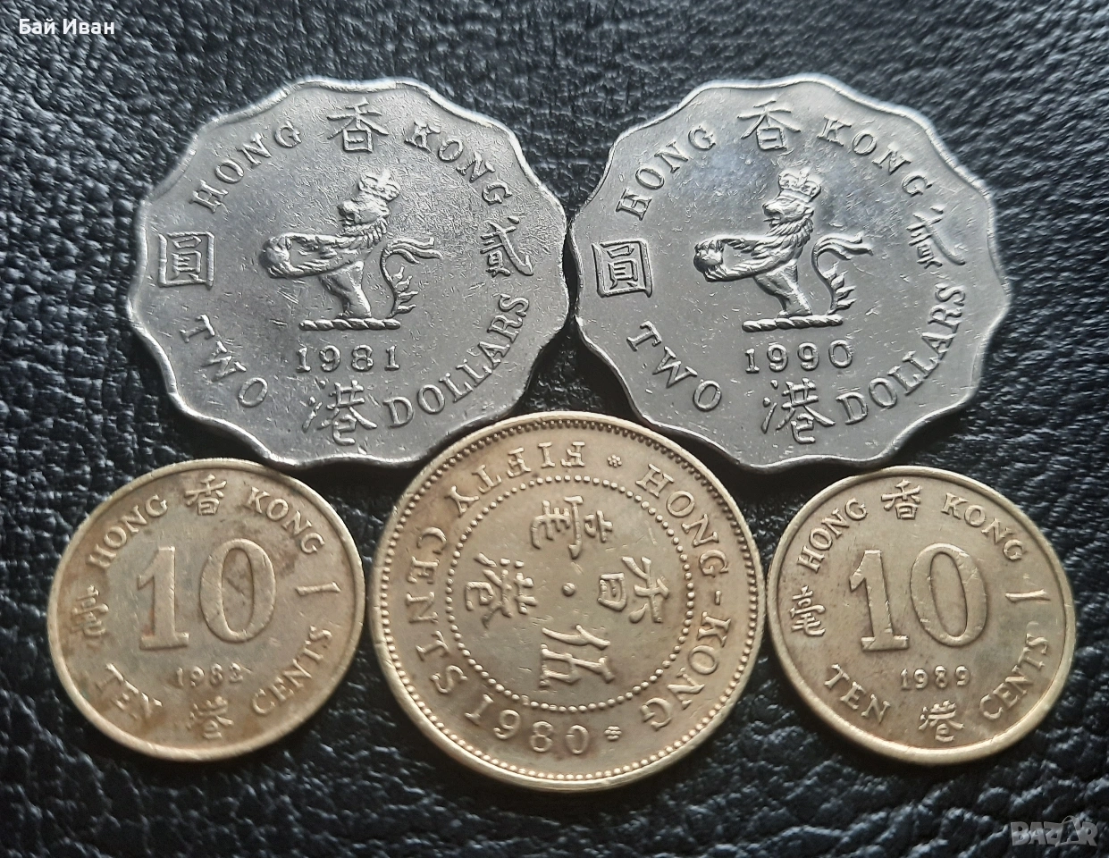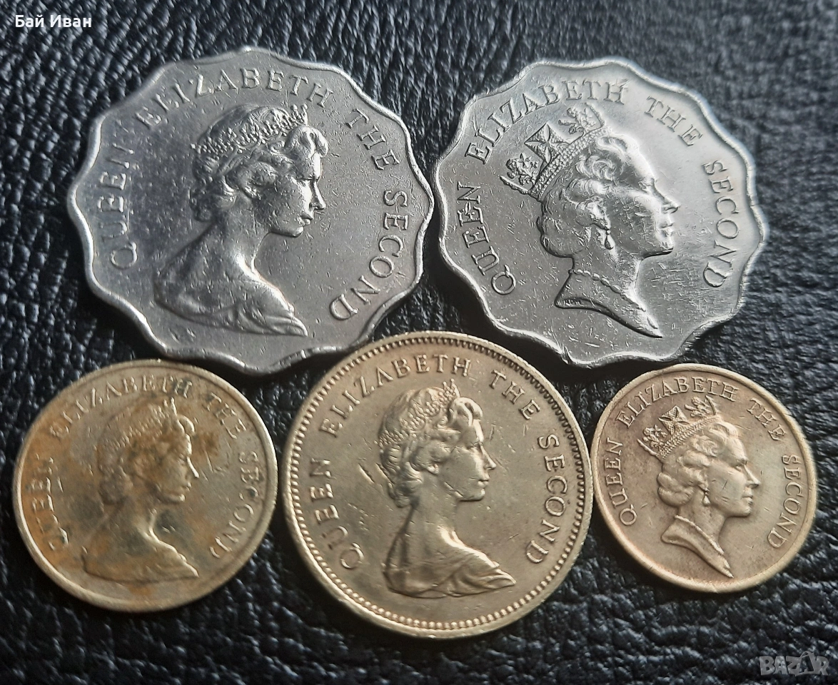 Цената е общо за всичките. Лота включва : 10 цента 1982 г. 10 цента 1989 г. 50 цента 1980 г. 2 долара 1981 г. и 2 долара 1990 г. Хонг Конг. Разгледайте и другите ми обяви-има какво да се види ! Моят съвет е-поръчайте си няколко мои артикула,така спестявате от доставка -с една доставка няколко неща !