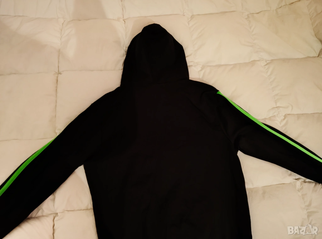 Суичър с цип BOXSING MILANO, размерът по етикетит е XXL но по-скоро отговаря на XL, широчина под мишниците 61 см, дължина 68 см, отлично състояние, произведен в Италия, цена като нов над 50 евро.