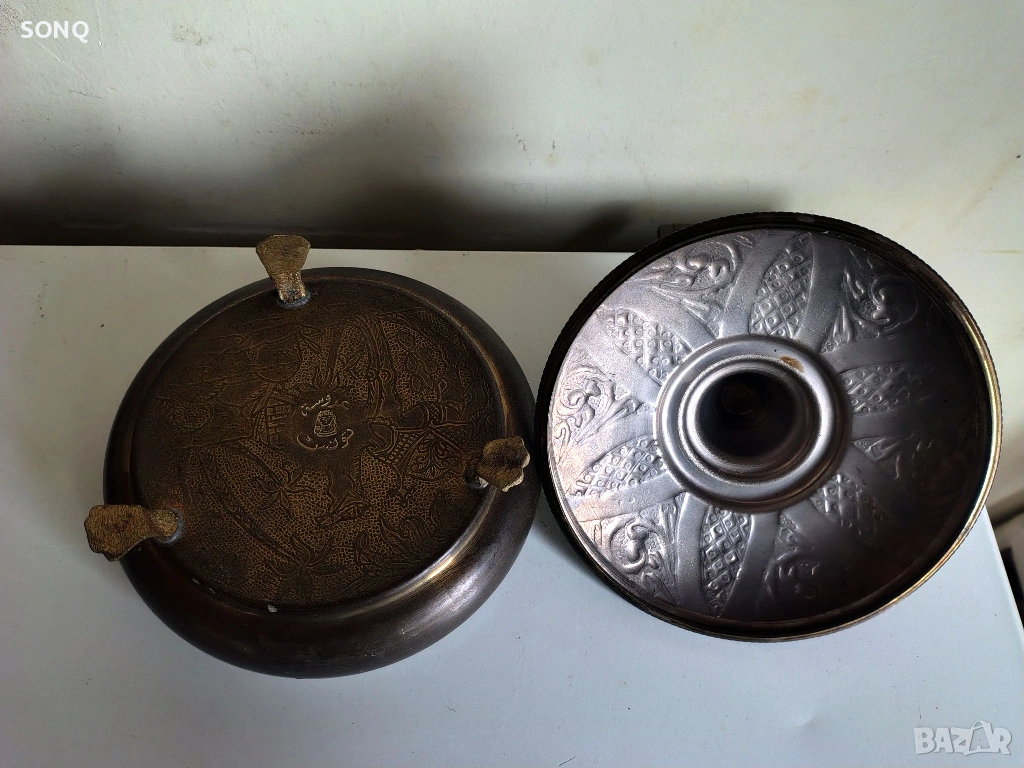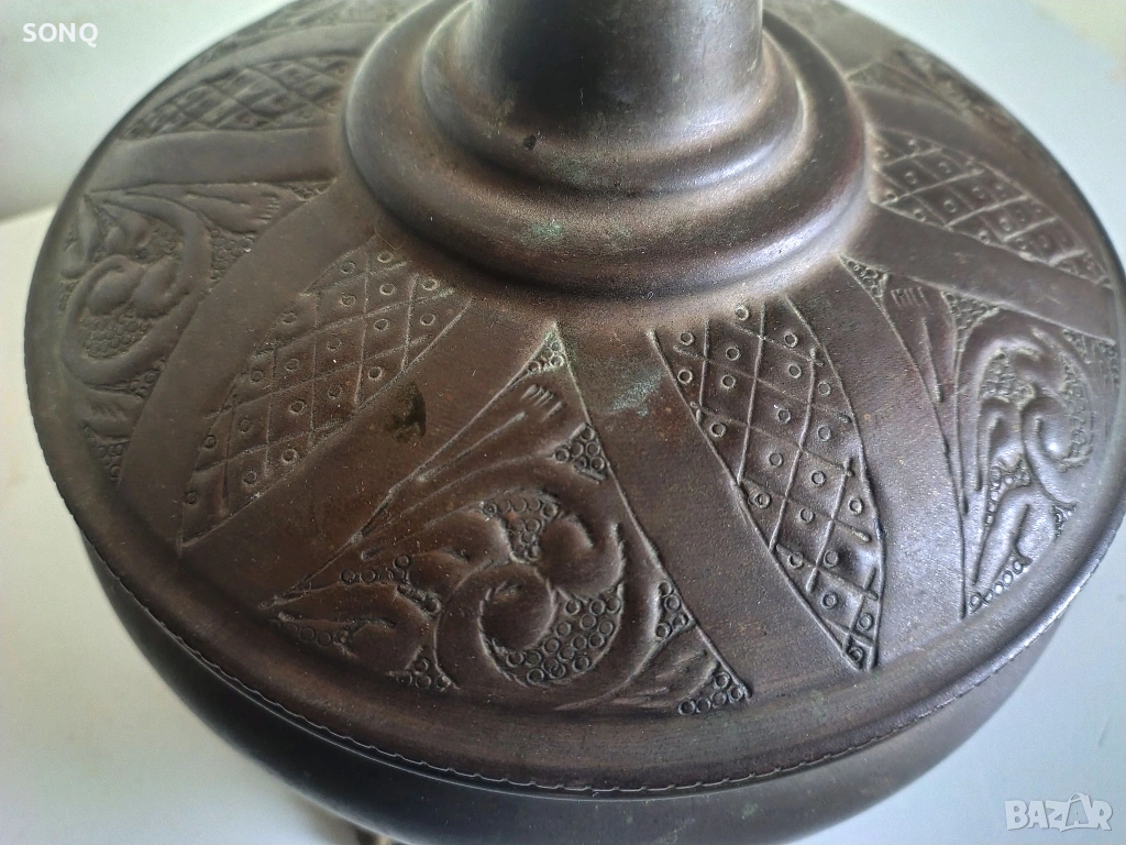 Красива стара изработка от мед-бакър със декоративни гравюри . Само за ценители.