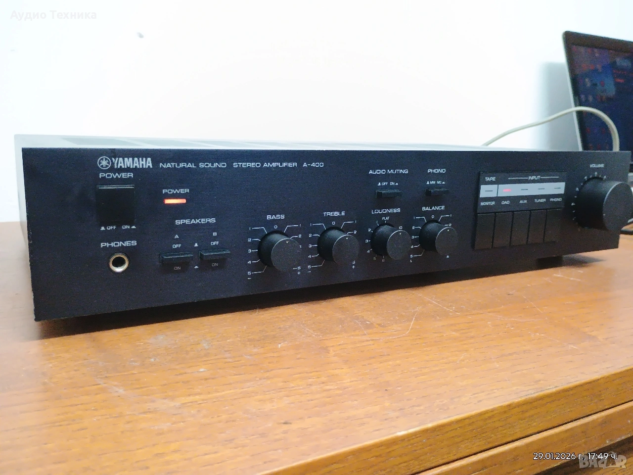 Компактен стерео усилвател Yamaha A-400. Перфектен с прекрасен звук! Изпращам видео.