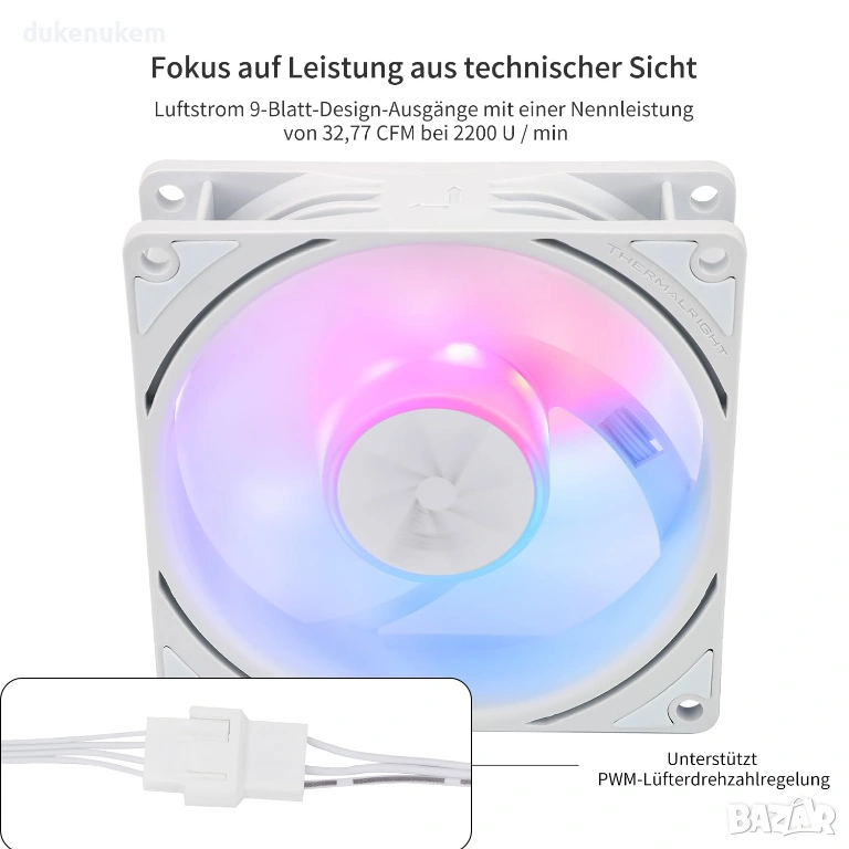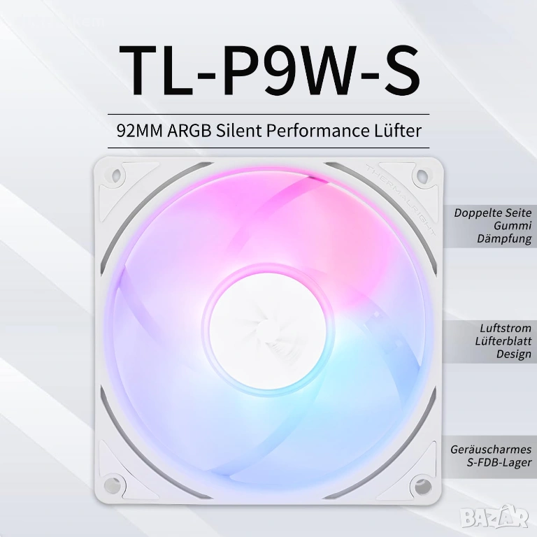 ARGB вентилатор за CPU Thermalright TL-P9W-S 92mm PWM – тих и мощен