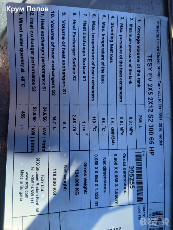 Бойлера е 270лтр. Може да се ползва за буферна съд