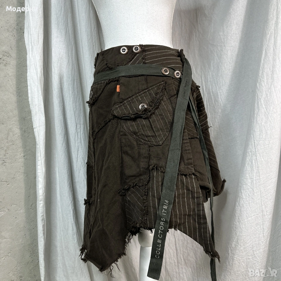 дизайнерска асиметрична пола с прехвърлено закопчаване,подходяща е за зимата