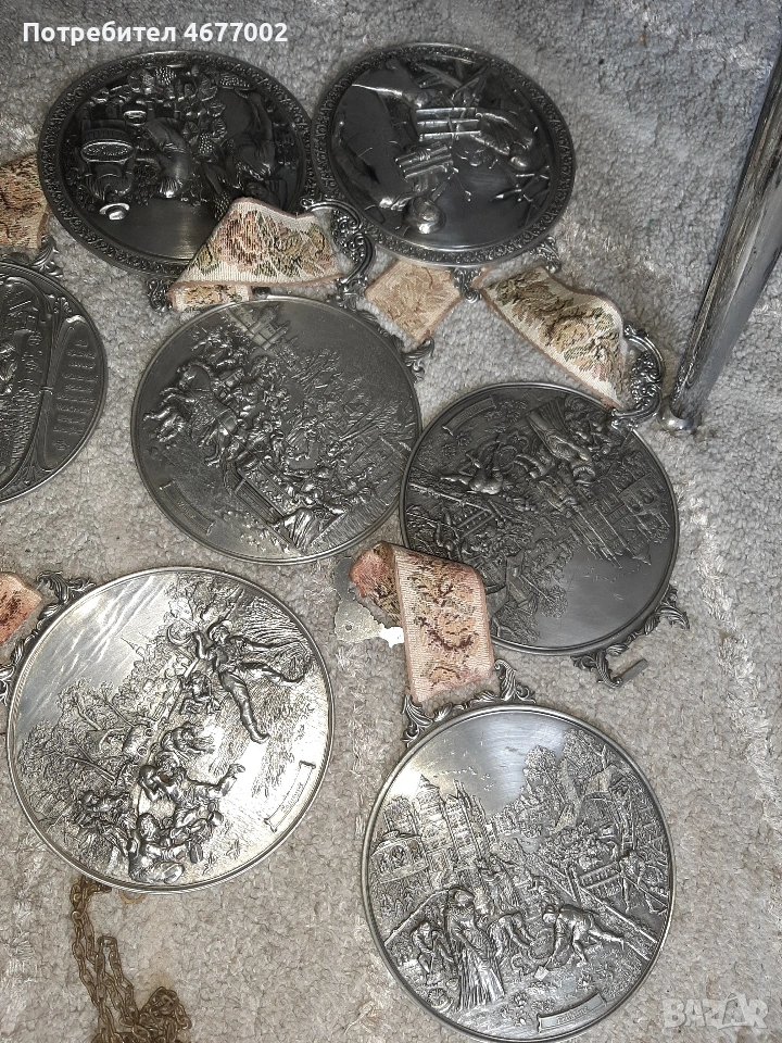 калаено сребърни предмети за закачане на стена много релефни всичките са на зинн цената е за 1 брой