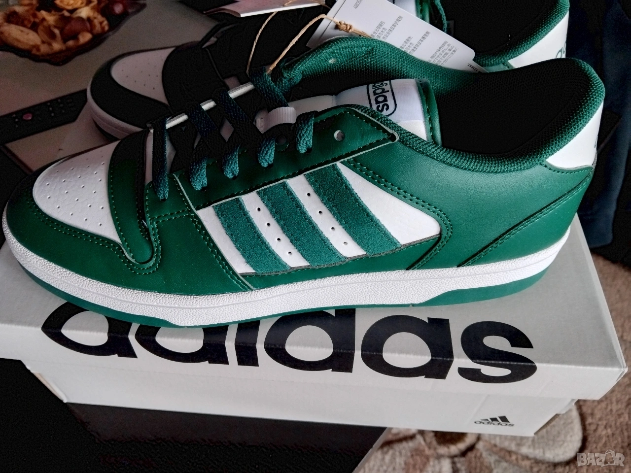 Чисто нови маратонки Adidas от естествена кожа номер 43 и една трета с дължина на стелката от 27,5 см.