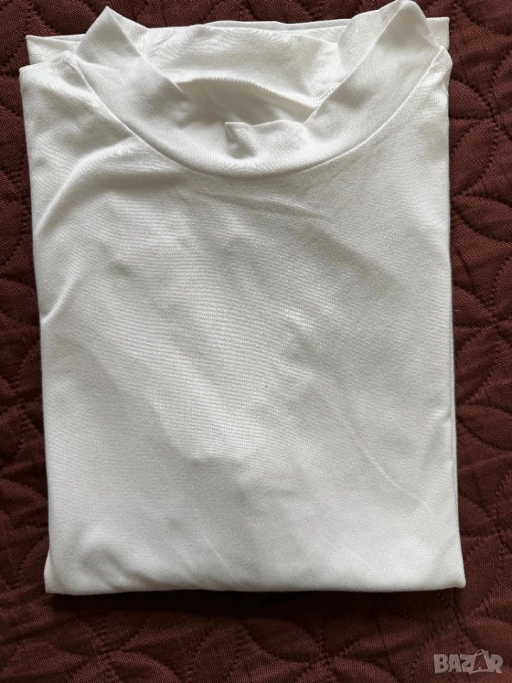 Нова дамска блуза в бял цвят, мека и приятна материя, с дантелени ръкави. Размер М.