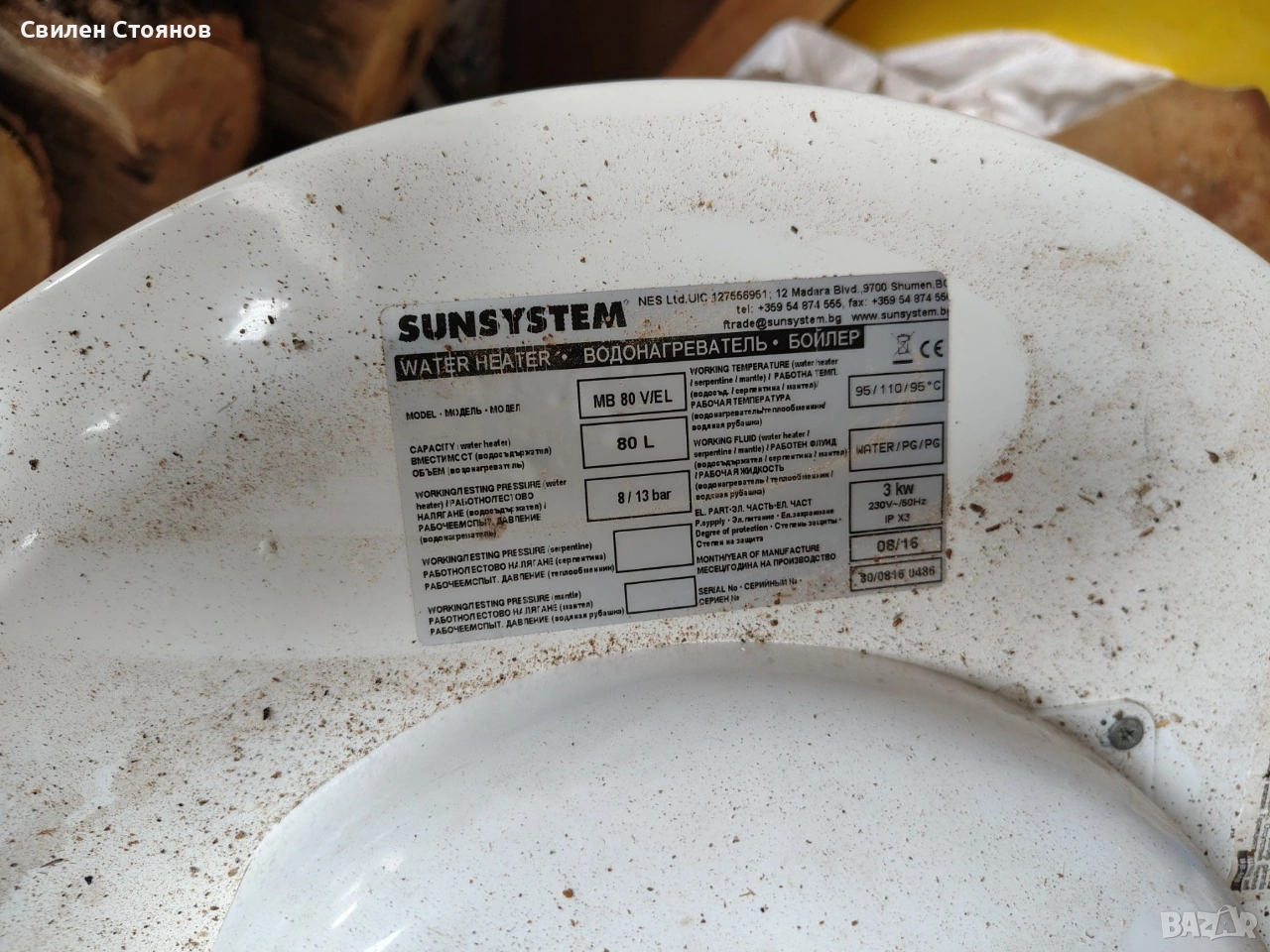 продавам Ел бойлер 80 литра 3. киловата работещ използван марка sunsystem