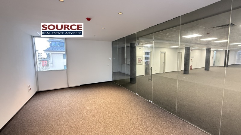 2. Разпределение: 2 голeми Open space помещения, 5 отделни работни помещения преградени със стъклени и гипсокартонени преградни стени, напълно оборудвана кухня бяла техника, 4 wc. Офисът се състои от 2 съседни офисни етажа които могат да бъдат изцяло с Open space разпределение или допълнително преградени според изискванията на Наемателя.