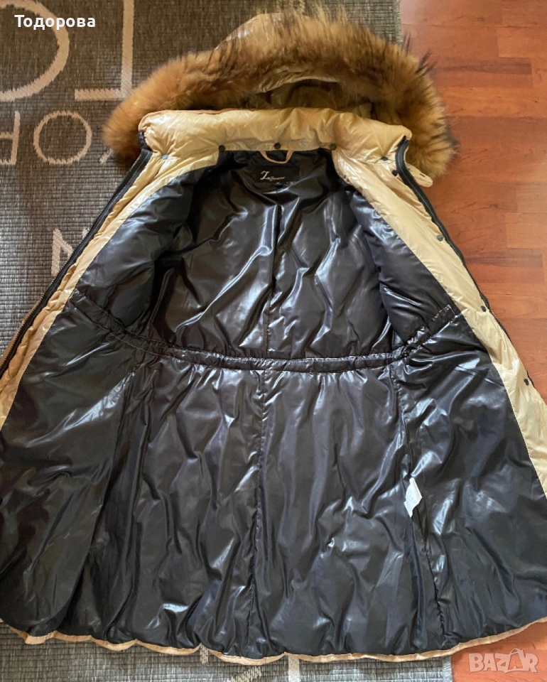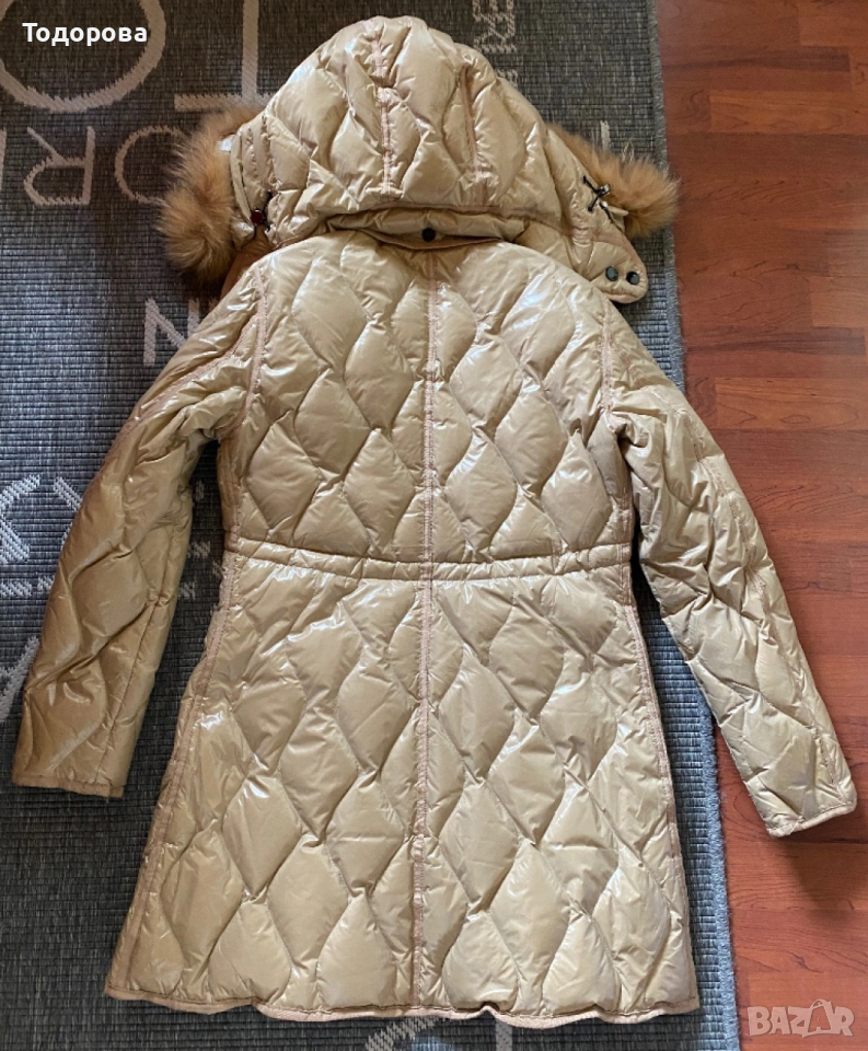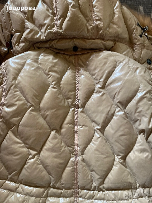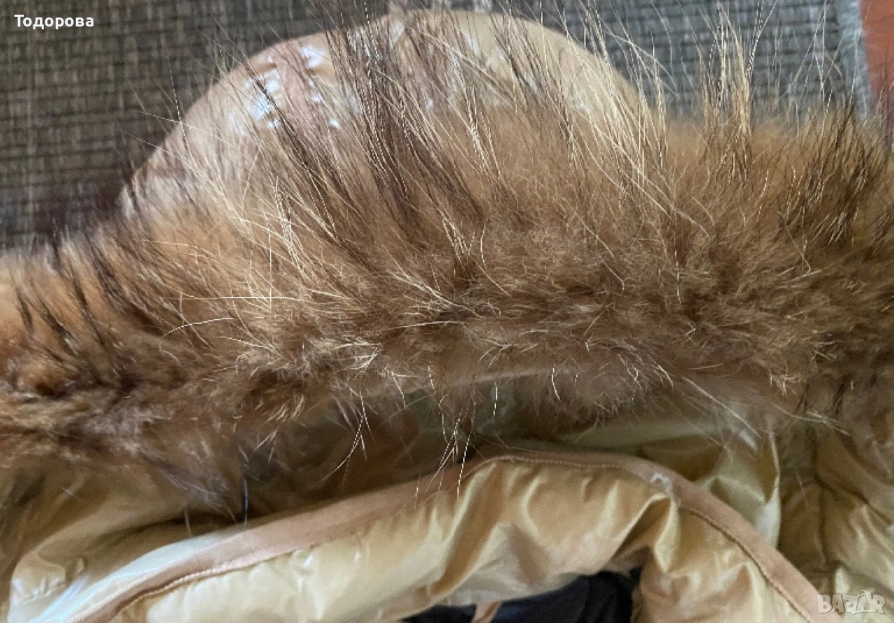 Много елегантно бежово яке с подвижна качулка, естествен пух. Високо качество.