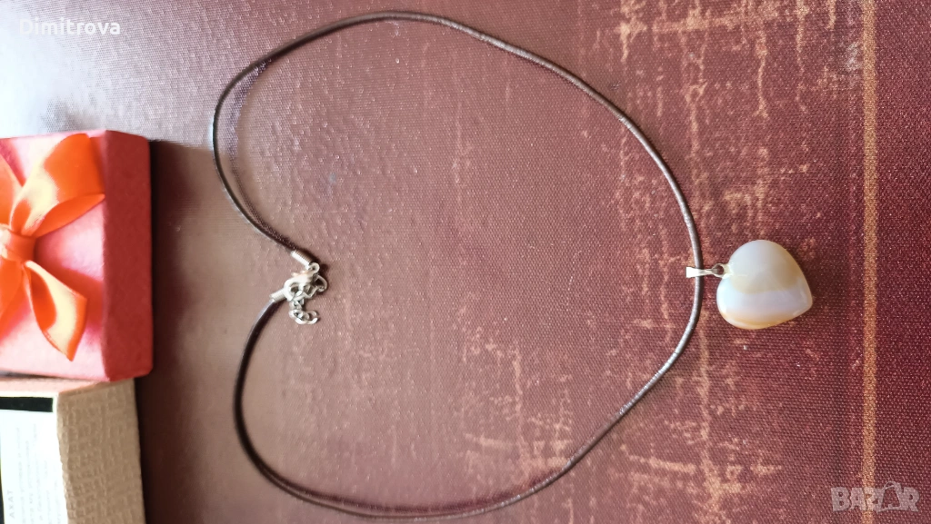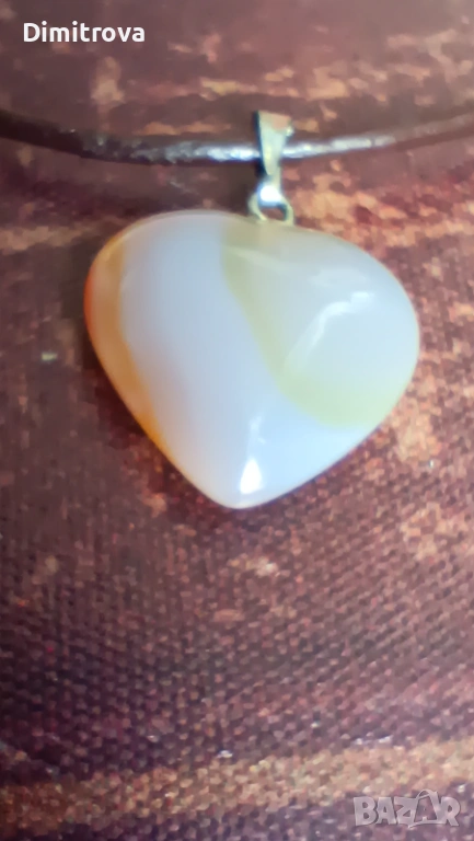 форма на сърце, изработена от естествен камък ахат, Шнур от естествена кожа за