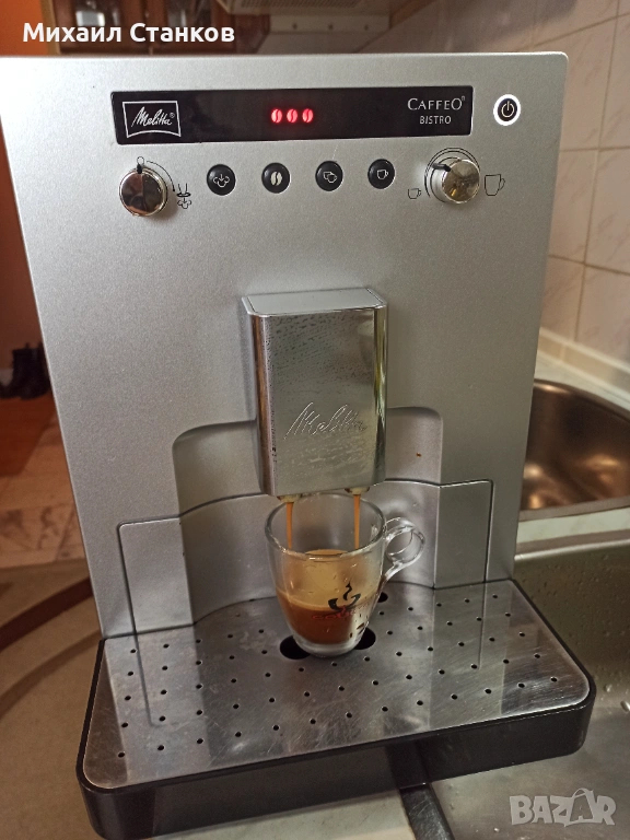 Кафе автомат Мелита кафе Бистро работи перфектно и прави супер кафе с каймак машината е профилактирана