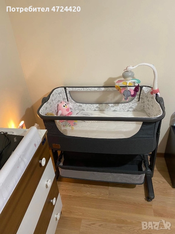 Кошарата е предназначена от раждането до 9 кг. Има включен матрак.